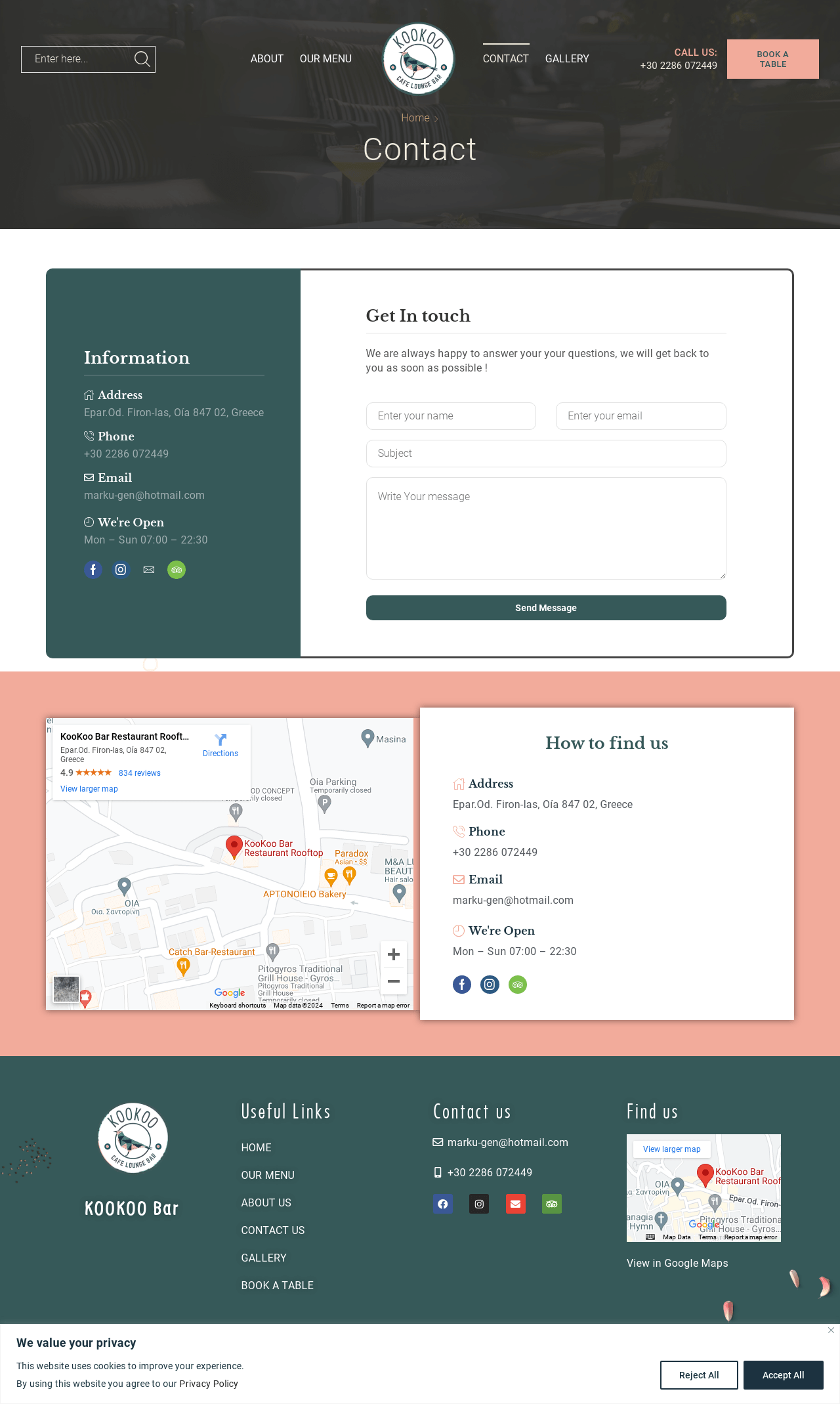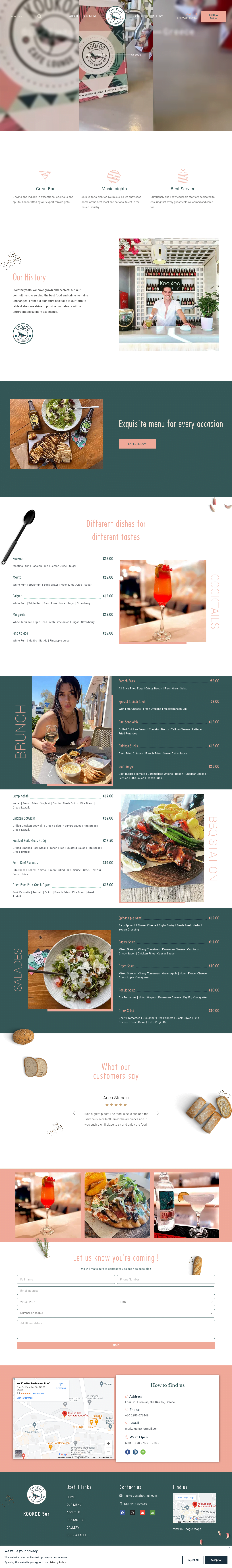 The website shows off Kookoobar’s chill atmosphere and commitment to good food and drinks. It also includes customer reviews, so potential visitors can see why people love hanging out there.